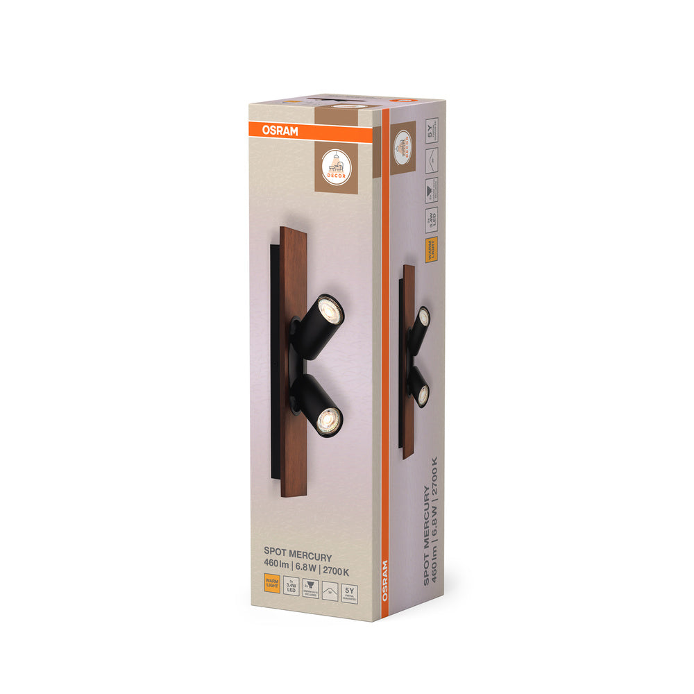 OSRAM DECOR SPOT MERCURY Deckenleuchte, 2 x 3,4W, Holzoptik, schwarz