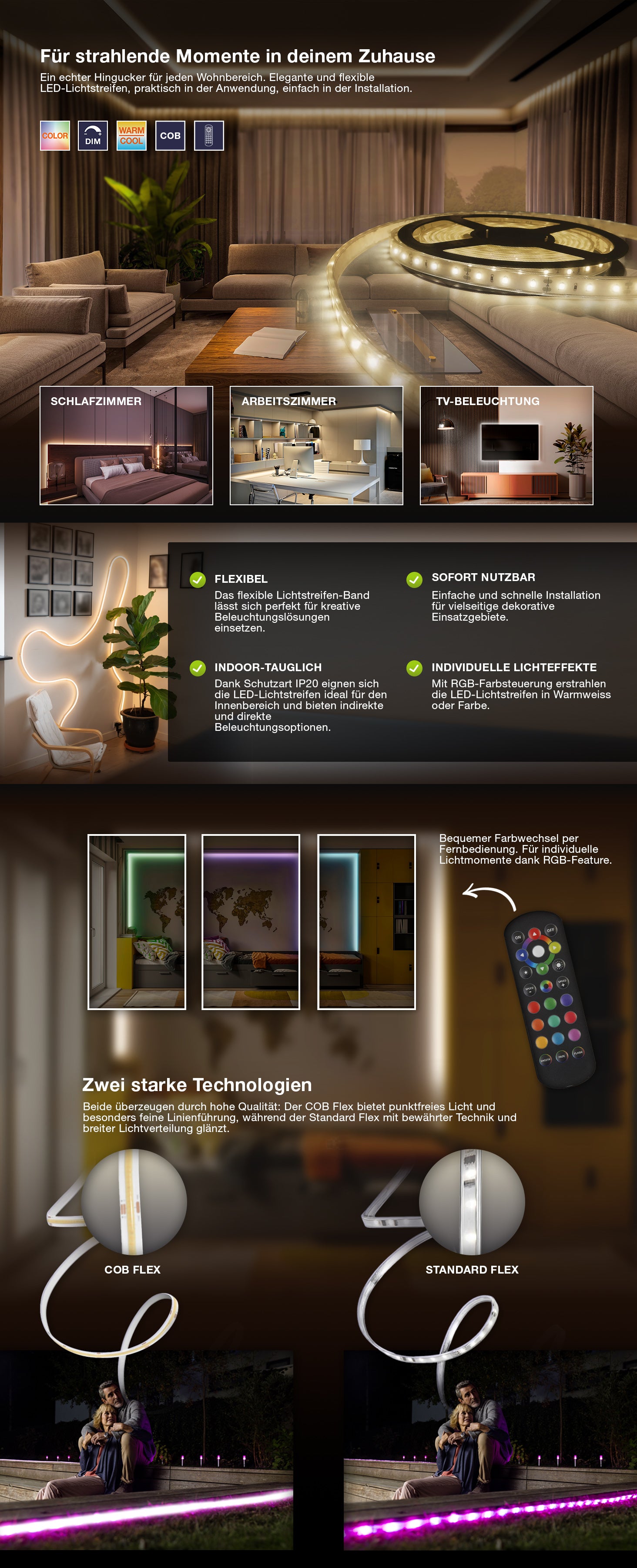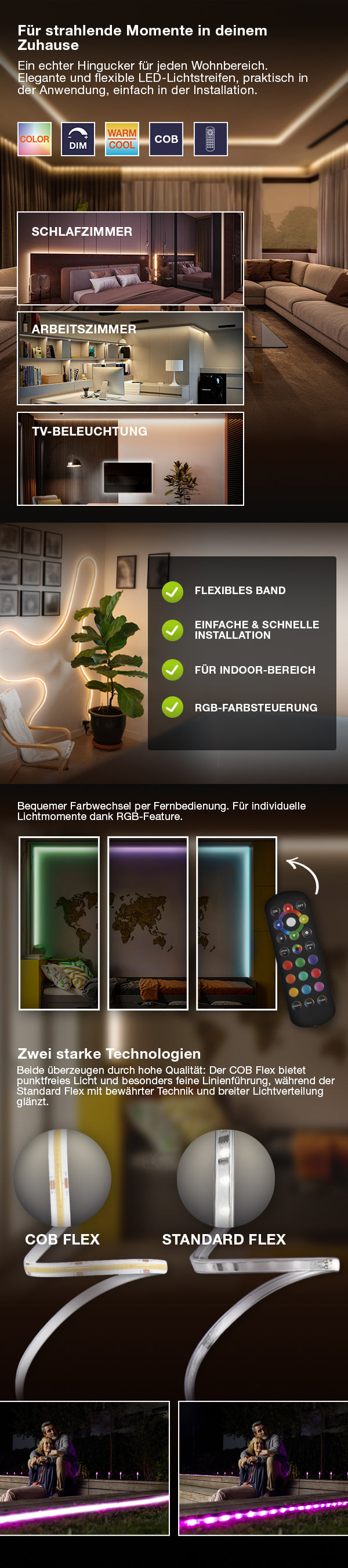 Dekorative bunte LED-Streifen für den Innenbereich, selbstklebend, mit USB-Anschluss