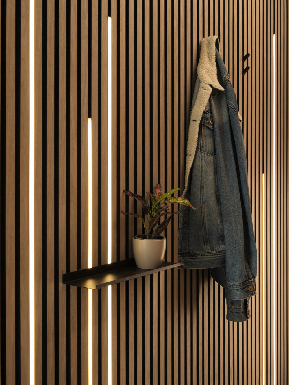 • Für Akustikpaneele: LED-Streifen mit matt-schwarzer Silikonhülle und schwarzer Leuchtfläche, nahezu unsichtbar bei ausgeschaltetem Licht