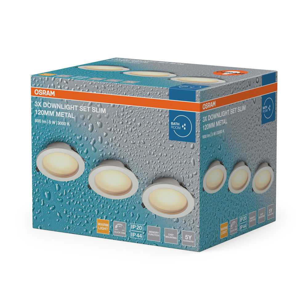 OSRAM LED Downlight Einbaustrahler Bad Set IP44 Slim 120 mm 8W Metall Weiß ⌀95 mm