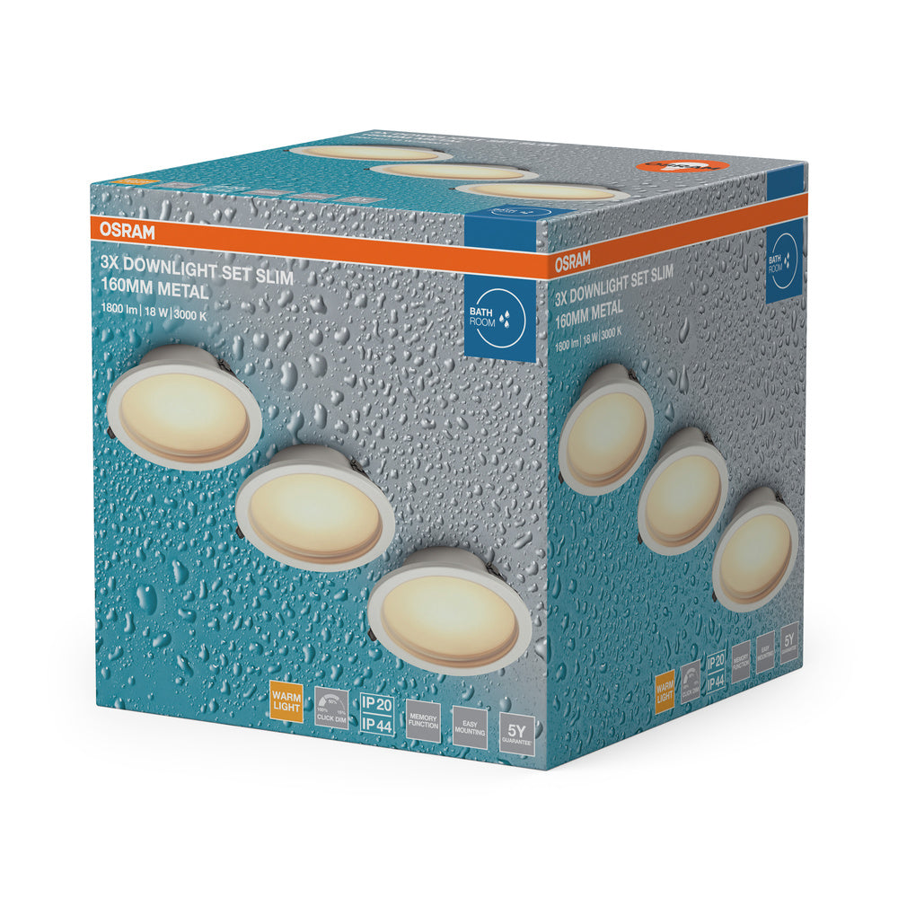 OSRAM LED Downlight Einbaustrahler Bad Set IP44 Slim 160 mm 18W Metall Weiß ⌀135 mm