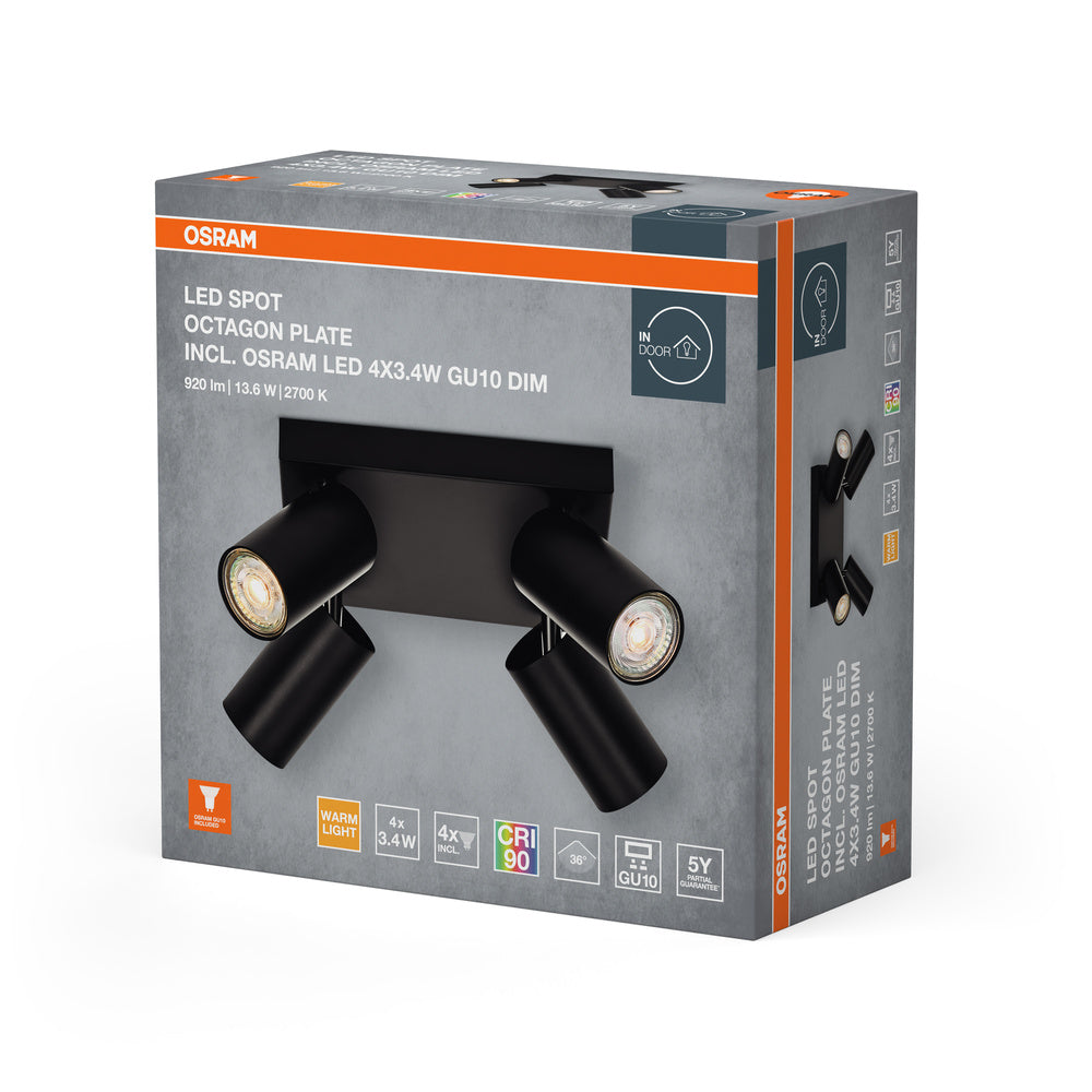 OSRAM LED SPOT OCTAGON PL Deckenleuchte 4 x 3,4W, GU10, 920lm, schwarz