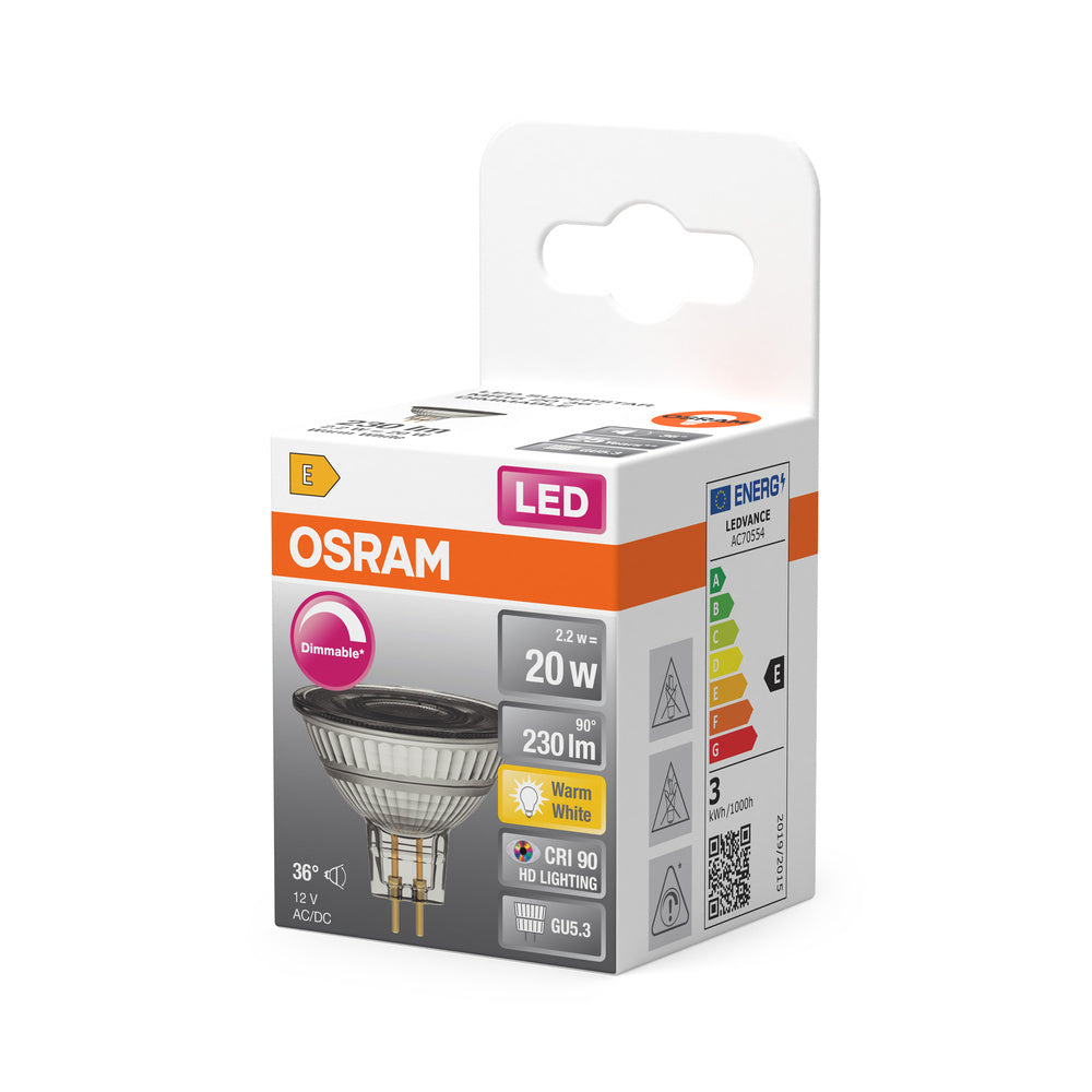OSRAM Superstar Reflektorlampe klares Glas ,Warmweiß (2700K), 230 Lumen, Ersatz für herkömmliche 20W-Leuchtmittel, dimmbar GU5.3