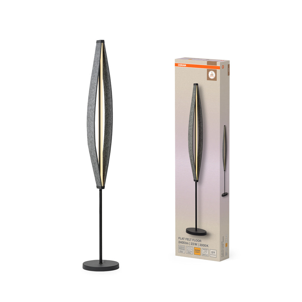 Die OSRAM DECOR Flat Felt Stehleuchte ist eine stilvolle Innenleuchte aus Filz mit integrierter LED – ideal für Flure, Wohnzimmer oder Schlafzimmer, die eine warme, einladende Atmosphäre schafft. Sie verbindet modernes Filz-Design mit praktischer Beleuchtung und passt sich stilvoll deinem Zuhause an.