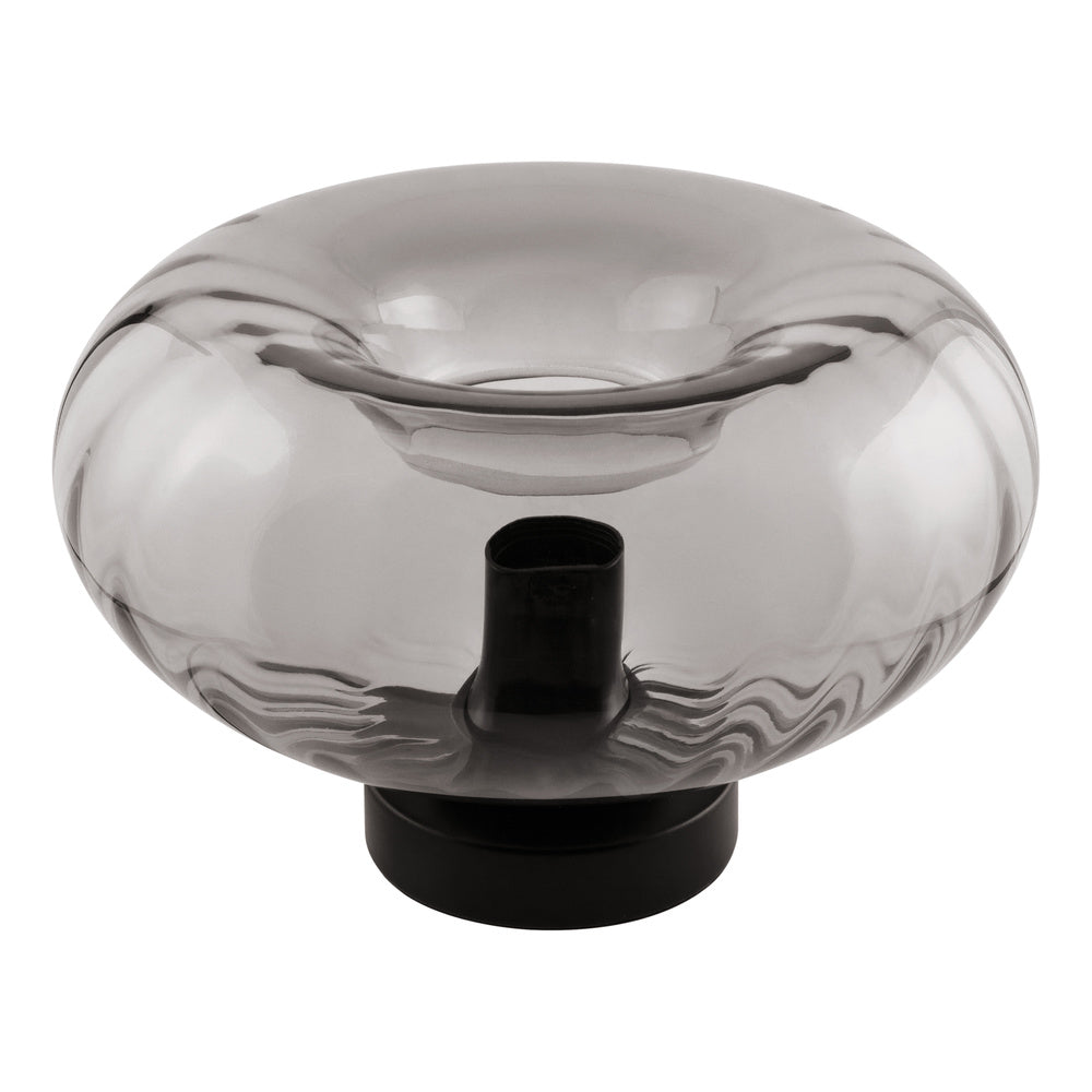 Dekorative Leuchte aus Metall und Rauchglas mit austauschbarer Lichtquelle.