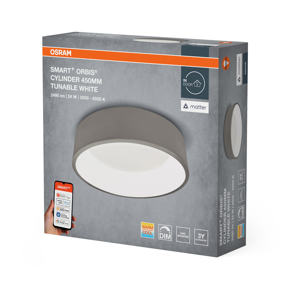 OSRAM Matter SMART+ Orbis Cylinder LED Deckenleuchte Tunable Weiß 45cm 24W / 3000-6500K Grau