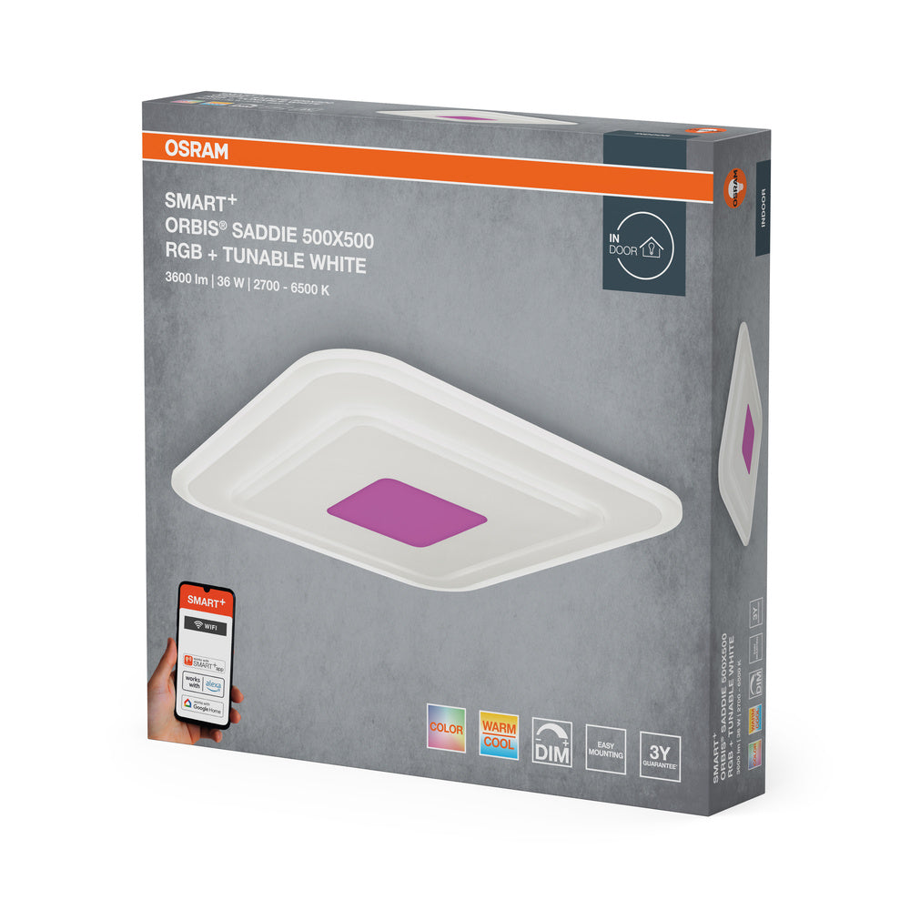 OSRAM Wifi SMART+ ORBIS SADDIE LED RGBW mehrfarbig Deckenleuchte 50x50cm Tunable Weiß 36W / 2700-6500K