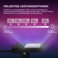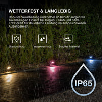 Farbenreiche Gartenbeleuchtung mit smarten Steuerungsmöglichkeiten.
