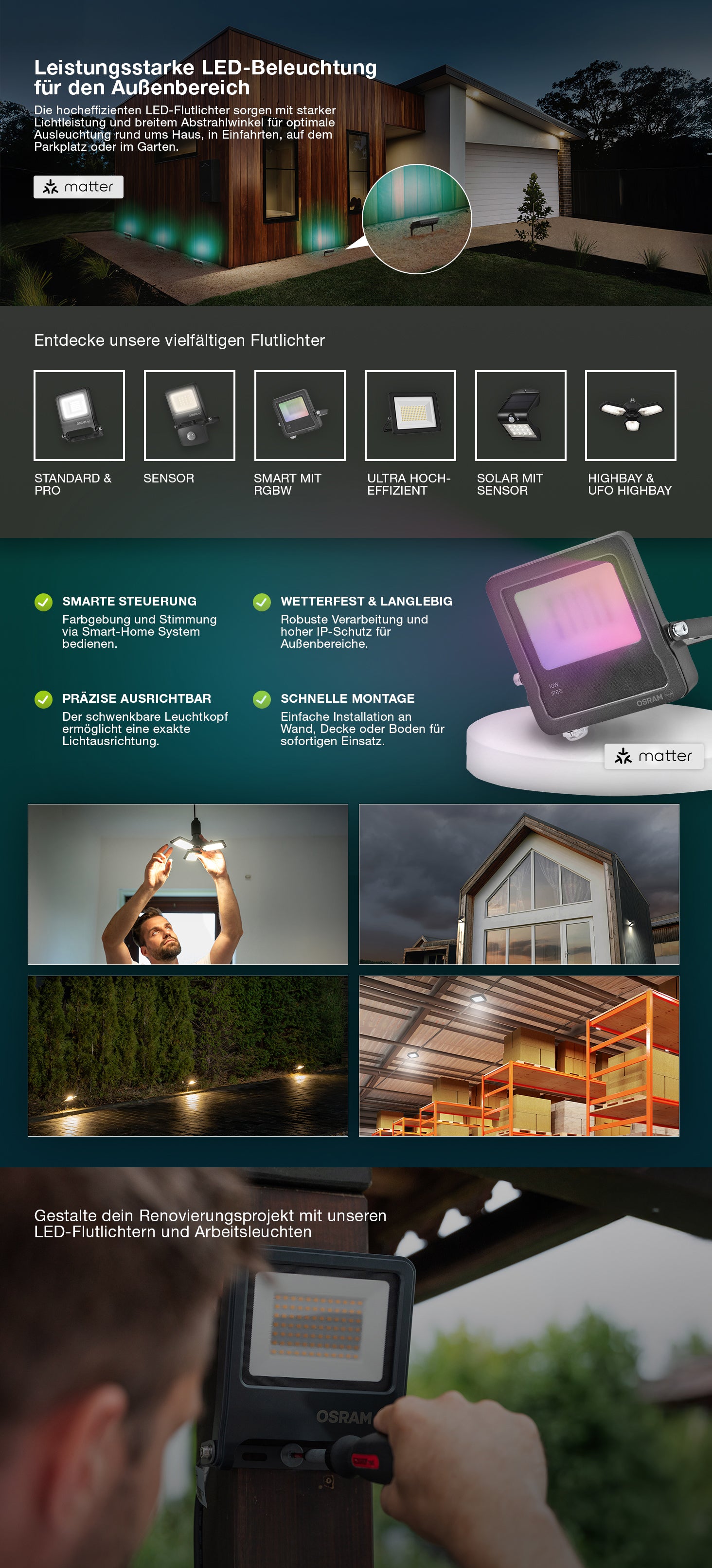 Steuerbar mit der SMART+ App (mit Minimum Android 8.0 oder iOS 14.0) oder anderen Matter-kompatiblen Plattformen.