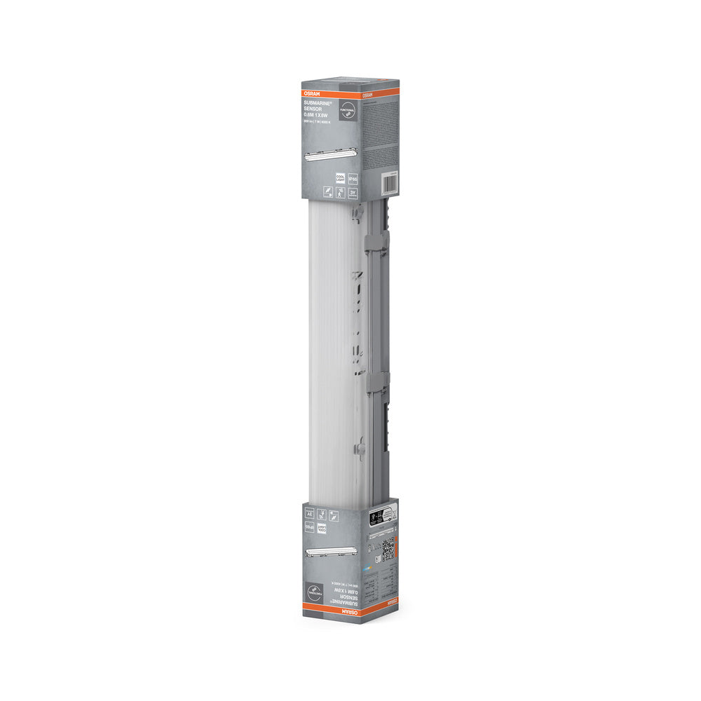 Feuchtraumleuchte mit eingebautem Bewegungsmelder. Produkteigenschaften: Haltbare und energiesparende LED-Leuchte. Staubdicht und geschützt gegen Strahlwasser (IP65). Feuchtraumleuchte mit im Gehäuse integriertem Infrarot-Bewegungsmelder-Sensor. Erfassungsbereich: 100% Haltezeit: 3 Minuten Standardeinstellung. Produktvorteile: Einfache Installation durch optimierten Platz für Montageklammern und einfach zu öffnendes Fach. Einfacher Lampenwechsel. Gute und gleichmäßige Ausleuchtung. Ermöglicht zusätzliche Energieeinsparungen und Anwendungskomfort durch Sensorsteuerung. Anwendungsgebiete: Keller, Garagen, Lagerhallen. Nur für Innenraumbeleuchtung. Technische Ausstattung: Bewegungsmelder im Leuchtengehäuse integriert. Funktioniert mit jeder LED Tube..